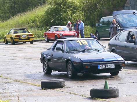 Wie schon erwähnt, wurde abermals das bewährte Alternativ-Programm angeboten, entweder eine Orientierungs-Rallye über ca. 120 km durch die schöne Gegend oder aber der sportliche Einsatz unseres Mittelmotorflitzers auf dem Flugplatz. Dort stand ein Slalom- und Beschleunigungswettbewerb auf dem Programm.