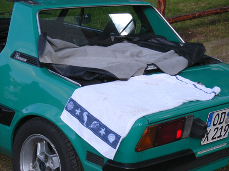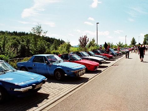Als die ersten Teilnehmer sich schon auf dem Heimweg befinden, treffen noch sechs X1/9 aus der Schweiz ein. Natürlich werden die Autos sofort fachkundig unter die Lupe genommen...